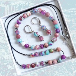 Náramek (17 cm) + Náušnice + Náhrdelník (45 cm + prodlužovací řetízek), Jaspis Regalit, chorurg. ocel, No. 577