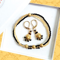 Náramek (17,5 cm) + Náušnice, Japonské korálky, chirurgická ocel - zlatá galvanizace, No, 580