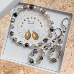 Náramek (17,5 cm) + Náušnice, Achát dračí,chirurgická ocel, No. 583