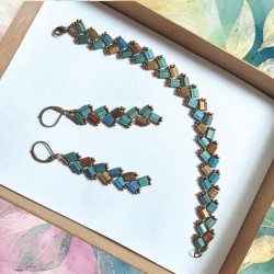 Náramek (17,5 cm) + Náušnice, Japonské korálky, bižuterní kov bez alergenů, No.597