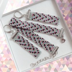 Náramek (17 cm + 4 cm prodlužovací řetízek) + Náušnice, Japonské korálky Miyuki,chirurgická ocel, No. 609