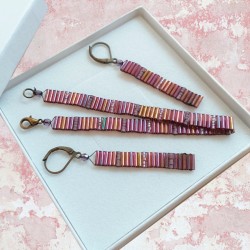 Náramek (17,7 cm) + Náušnice (délka 6 cm), Japonské korálky Miyuki, ručně šité, bižuterní kov bez alergenů, No. 619