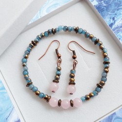 Náramek (17,5 cm) + Náušnice, Akvamarín pokovný, Růženín, bižuterní kov bez alergenů, No. 625